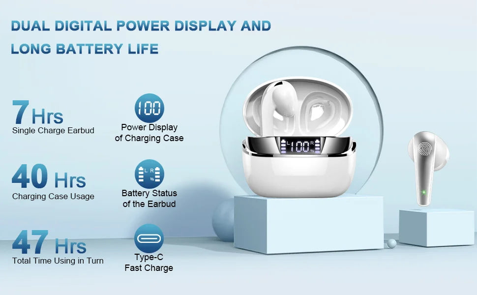 While lacking ANC, these earbuds excel in practicality: the LED display eliminates battery anxiety, ENC ensures professional call quality, and 40-hour endurance keeps you powered through workouts, commutes, or travel. A cost-effective choice for users valuing simplicity, durability, and performance.