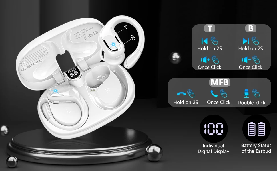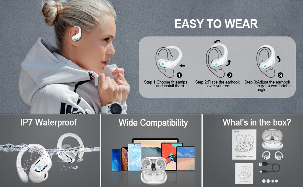 - Secure Ear-Hook Design: Lightweight plastic construction with ergonomic hooks ensures stability during runs, gym sessions, or cycling.