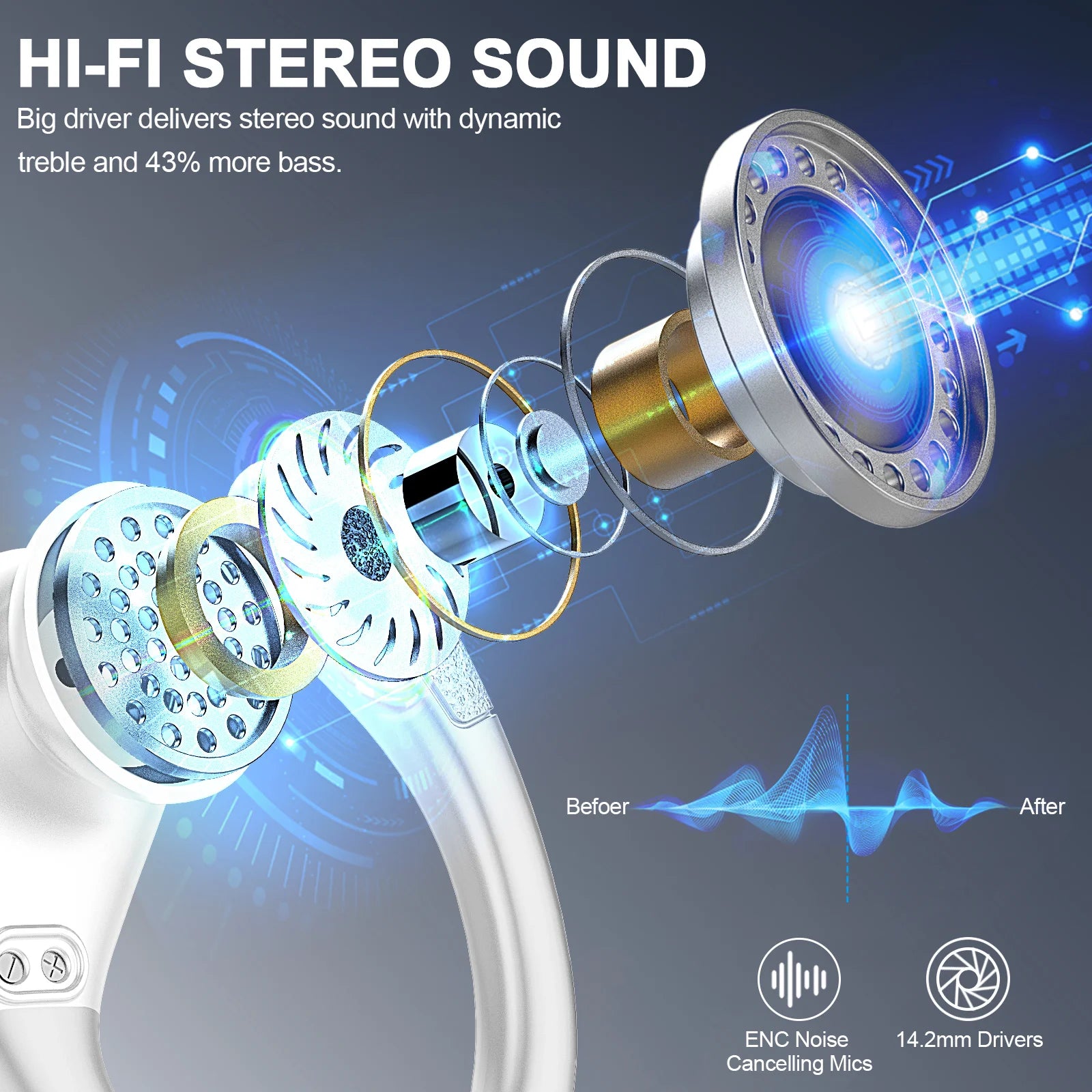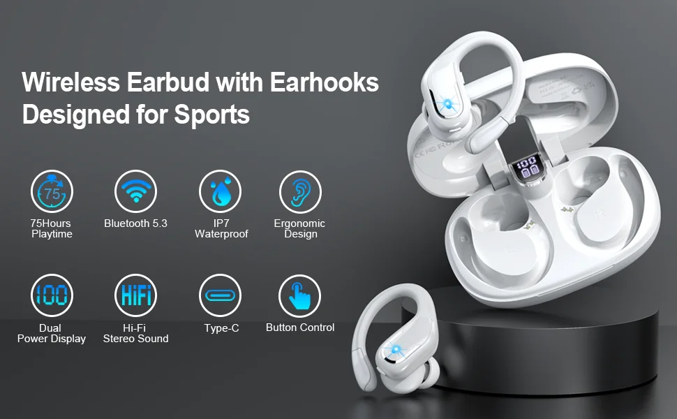 The SportPro Wireless Earbuds deliver marathon battery life, crystal-clear calls, and a secure fit for athletes and active users. Featuring Bluetooth 5.3, ENC noise reduction, and an ergonomic ear-hook design, these earbuds are built to keep up with workouts, commutes, and daily adventures.
