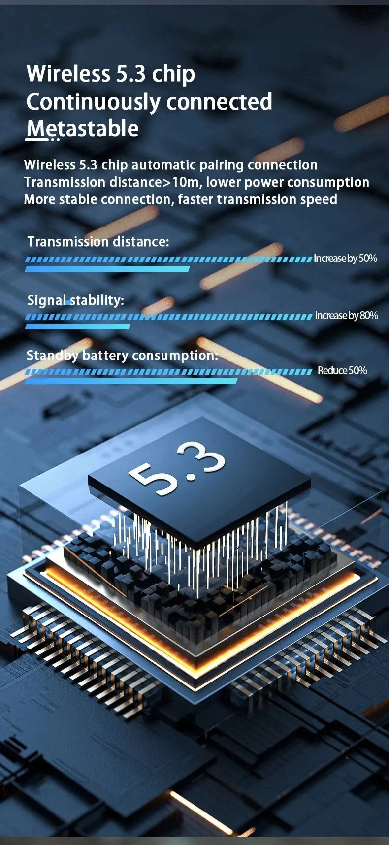 - True wireless earbuds with Bluetooth 5.1 chip, faster transmission and more stable signal.