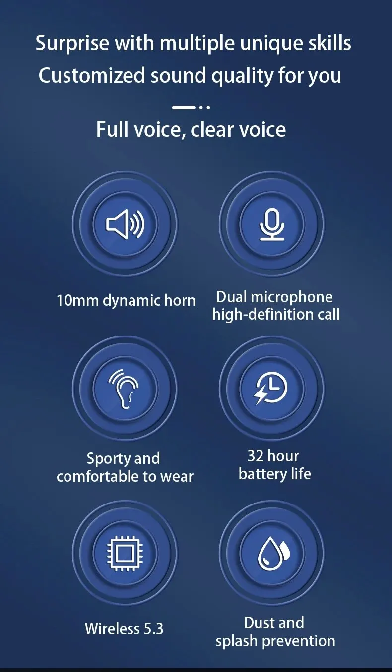 such as Siri and android voice assistant. With intelligent voice reminder, helping you to know the real-time status of your headset.